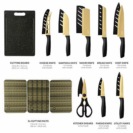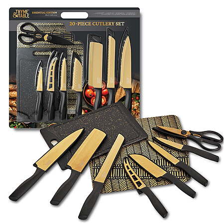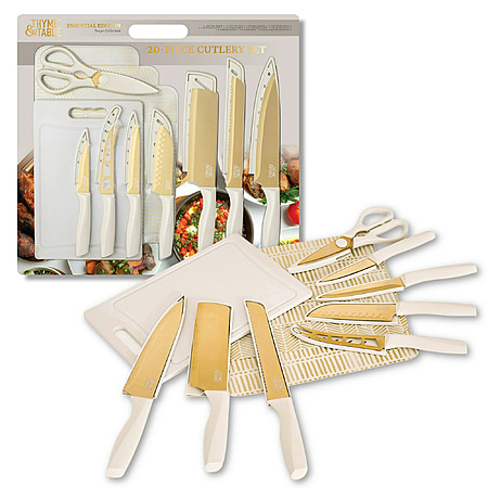 20-Pc Thyme & Table Stainless Steel Knife & Cutting Board Set (Black or Taupe)