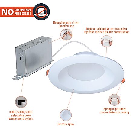 • CANLESS: Halo LTDM6 Selectable Series Downlights are complete 6 inch canless recessed lights designed for use in new construction, remodel and retrofit installation, without needing a housing or junction box