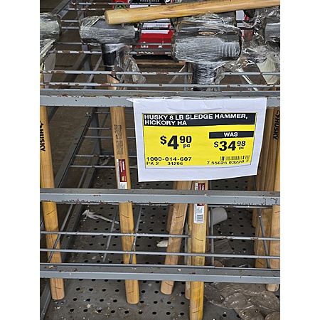 Husky8 lb. Sledge Hammer with 36 in. Hickory Handle YMMV B&M $4.90