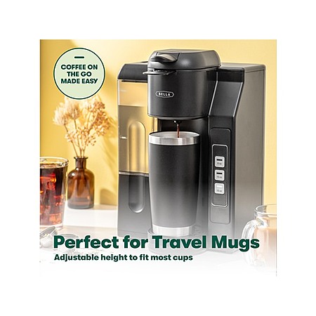 • If you're looking for a coffee machine that can do it all, the single-serve brewers by BELLA are perfect for you. This brewer can handle both K-Cup pods and ground coffee, so you can use your favorite beans and blends. The adjustable and detachable stainless steel drip tray fits mugs of any height, so no matter what size cup you prefer, your coffee will always taste great. The large removable water tank holds 40 ounces, so you can brew multiple cups before having to refill. The dual pump system ensures maximum flavor extraction and the pressurized pump design prevents grounds from entering your cup. The touch screen makes operation easy and the automatic shutoff provides safety and convenience. The coffee pot is also super quiet, so you won't be disturbed while you're enjoying your morning cup of coffee.