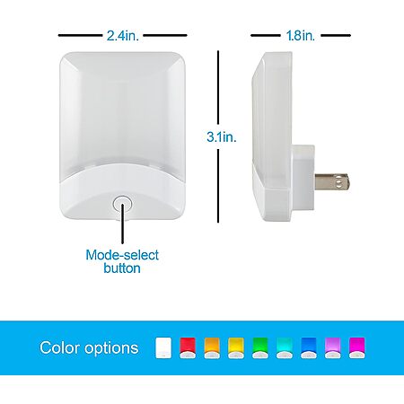 - Solid color mode lets you to choose your favorite of the 8 available colors, color-changing mode automatically cycles through the available colors and soft-white mode allows you to opt for a more traditional night light