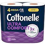 4-Pack Cottonelle 2-Ply Toilet Paper Mega Rolls (Ultra Comfort) for $5 - $0.75 - 15% when you 'clip' coupons on the product page - 5% when you check out via Subscribe & Save =