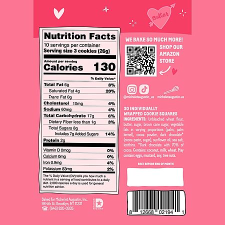 Model: Michel et Augustin Chocolate Cookie Squares, Valentine’s Chocolate Gift Box, Dark Chocolate & Sea Salt French Shortbread Cookies, Valentine’s Candy Bulk, Individually Wrapped, 30-Pack