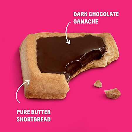 • Individually wrapped shortbread butter cookie squares filled w/ dark chocolate ganache & a pinch of sea salt