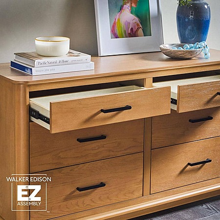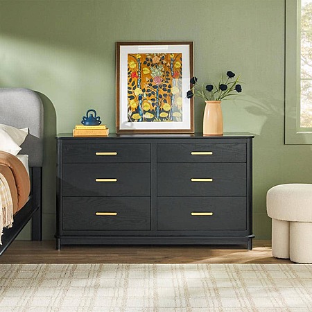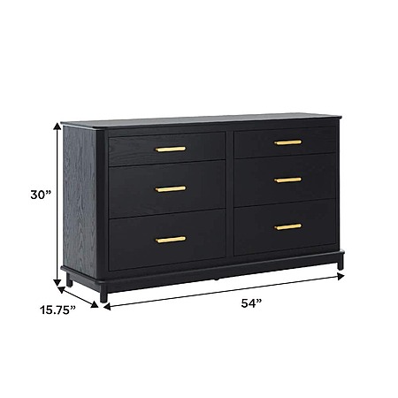 Walker Edison Contemporary 6-Drawer 54" Solid Wood Dresser w/ Curved Edge (Black or English Oak) $99.99 + Free Shipping