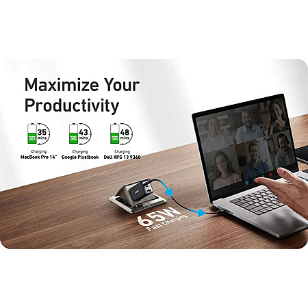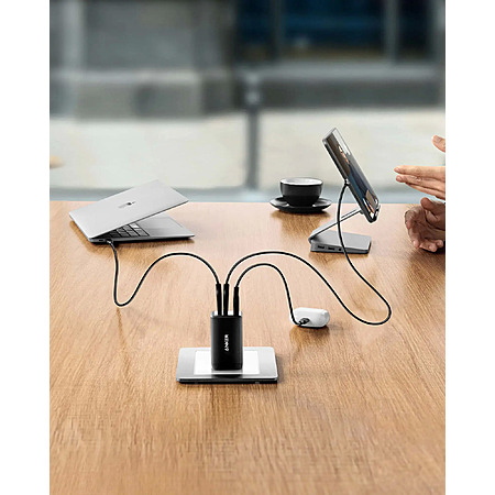 • Connect a single device to get a 65W max charge—that's enough to power up a 2020 MacBook Pro 13″ at full speed. And when you connect three devices, power will be distributed efficiently between ports to ensure you get the best charge.