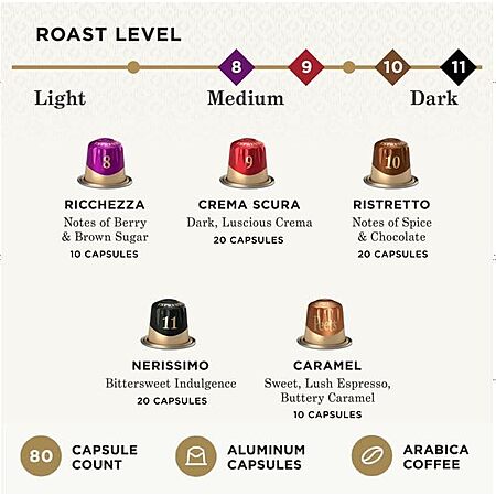 8, 11 and caramel quite inferior to nespresso - similar to Starbucks quality.