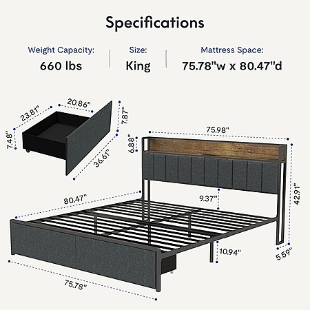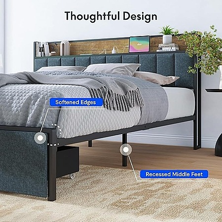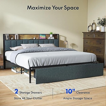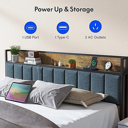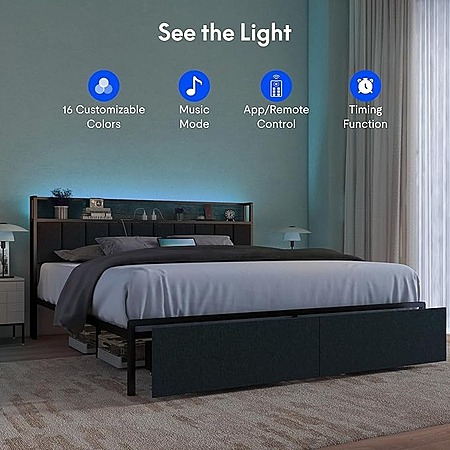 FLEXISPOT King Storage LED Bed Frame w/ Built-in Charging Station & Headboard Shelf $117 + Free Shipping