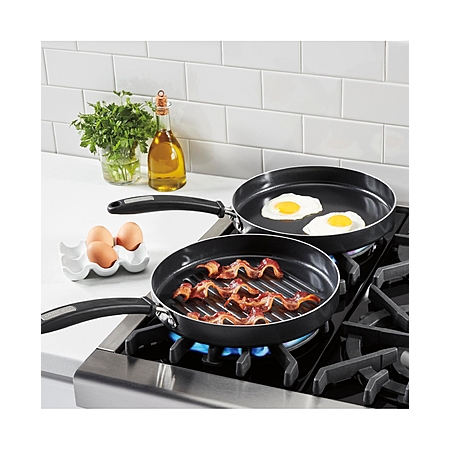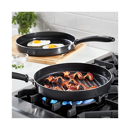 From family-size servings of eggs at breakfast to beautifully seared steaks at dinner, this grill pan and griddle pan set from Cuisinart is ready to serve all day long. A durable nonstick ceramic coating makes clean-up easy.