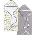 2-Pack 29"x29" Burt's Bees Baby Soft Organic Cotton Nursery Towel with Hood Set (Honeybee/Grey) on sale for