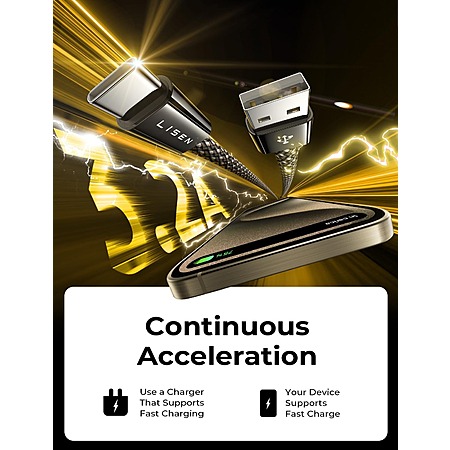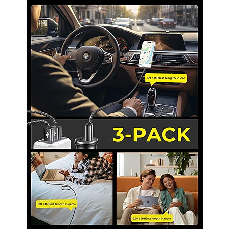 LISEN USB-C Cables: 3-Pack USB-A to USB-C Cables (3.3' + 3.3' + 6.6')