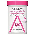 120-Count Almay Biodegradable Oil Free Micellar Gentle Makeup Remover Pads (Fragrance-Free) $4.47 w/ S&S + Free Shipping w/ Prime or on $35+