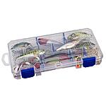 SPECIFICATIONS: This Tuff Tainer fishing tackle box measures 9.125" L x 5" W x 1.25" D. Includes 9 Zerust dividers. Proudly Made in the U.S.A.