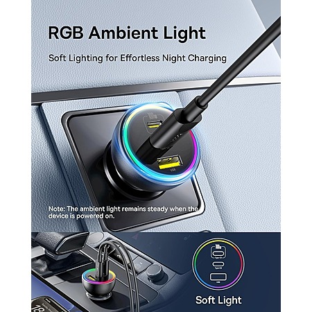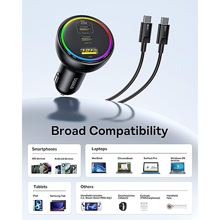 Baseus 152.5W 3 Ports USB C Car Charger RGB Fast Charging $22.86 + Free Shipping