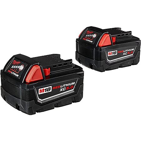 2-Pack Milwaukee M18 REDLITHIUM XC 5-Ah Battery (48-11-1852) on sale for
