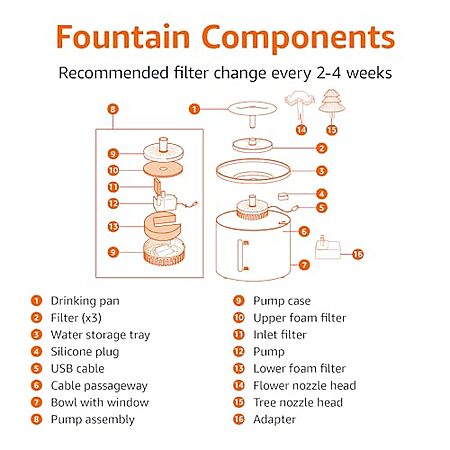 - It provides fresh clean water for your lovely pets, with 3 filters,two of them are replacements.It is recommended to change the filter every 2-4 weeks.