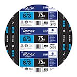 YYMV: Southwire 75-Feet 8 / 3 / Romex SIMpull Stranded Indoor CU NM-B W/G Individual pack ( By-the-roll ) | Free shipping