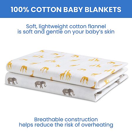 2-Pack 30" x 30" Delta Children 100% Cotton Flannel Baby Receiving Blankets (Safari Friends) $4.96 + Free Shipping w/ Prime or on $35+
