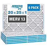 6-Pack MERV 13 Aerostar 20x25x1 Pleated Air Filter, AC Furnace Air Filter
