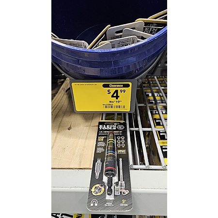 Didn't find OP at my local 4 stores, but nice deal if you can find. I did see a few other Klein items being clearanced. They had that nice stubby screwdriver/nut driver 6-in-one #32561 and regular sized screwdriver/ nut driver 11-in-one #32500 packaged together as Item 85518 and UPC 092644855184. It rang up ~~ $10 for the pair. Both are non-ratcheting. I love how they feel and gives you quite a few combos including #1, #2, 3/16" flat, 1/4" flat, #1 SQ, #2 SQ, T10, T15, 1/4" Nut, 5/16" Nut, and 3/8" Nut. YMMV.