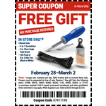 Receive a FREE GIFT (choose from: 4-in-1 Screwdriver, 2 in. Short Angle Print Brush, or 100-Pack of 8 in. Cable Ties) with coupon code 87417198, valid from Friday, Feb. 28th through Sunday, Mar. 2nd. No purchase required. Valid in-store only.