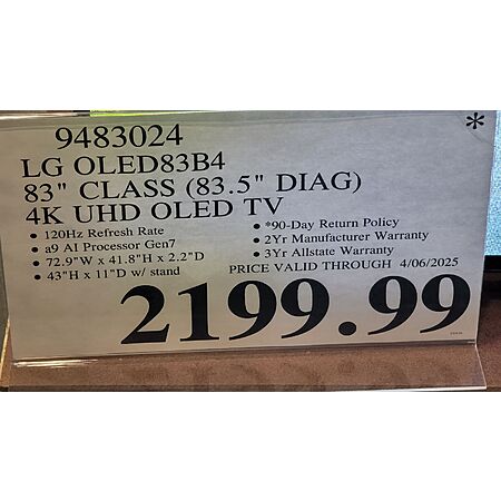 Costco B&M YMMV: 83" LG B4 OLED $2199