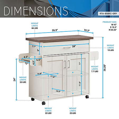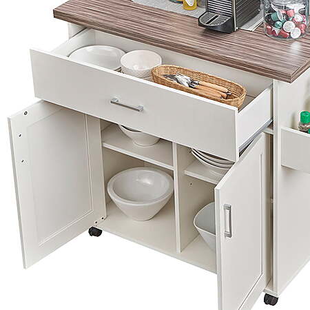 35.5" Techni Home Mobile Kitchen Cart w/ Top & Shelf Storage Cabinets