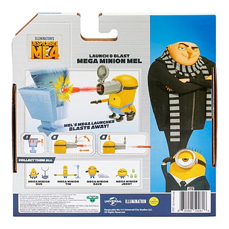 Model: Despicable Me 4 Launch & Blast Mega Minion Mel Action Figure, 4-13, Yellow, ABS, 0.18 lb