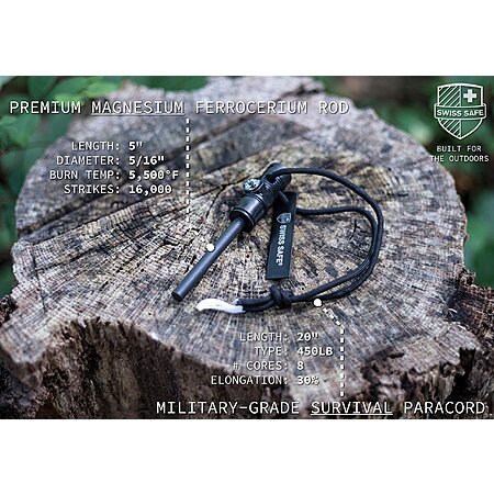 2-Pack Swiss Safe 5-in-1 Magnesium Ferro Rod Fire Starter Survival Tool (Blue)