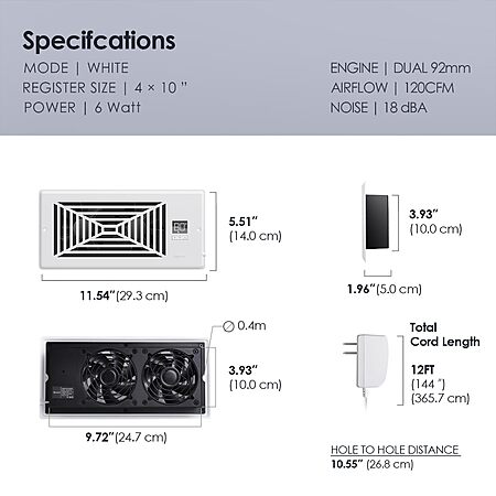 4"x10" Biowind Smart AC Vent Cooling Booster Fan w/ Thermostat Control & Remote Control (White) $39.99 + Free Shipping