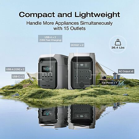 - [Up to 2200W Continuous X-Boost Mode, Compatible with 99% of Household Appliances] The EcoFlow Delta 3 1500 portable power station features multiple outputs to power up to 15 devices simultaneously. Its X-Boost mode supports resistive devices consuming up to 2200W, making it compatible with 99% of household appliances. From running a microwave during a power outage to powering a drill on a job site, this solar generator is your reliable power source.