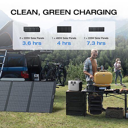 EF ECOFLOW Solar Generator DELTA 3 1500 with 220W Solar Panel, 1536Wh LiFePO4 Battery, 6X1800W (X-Boost 2200W)