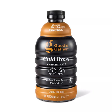 Add a rich twist to your coffee routine with this Caramel Cold Brew Concentrate from Good & Gather™. Made with medium roast 100% Arabica coffee, this unsweetened cold brew concentrate features a classic caramel macchiato flavor with other natural flavors. You get five servings per 32-ounce bottle when prepared as directed (just add water), and you can add milk, cream or milk substitutes as desired for cafe-quality coffee in the comfort of your home. Every product that carries the Good & Gather™ name starts with quality ingredients that deliver great taste, making it easier for you and your family to eat well every day. We promise you'll love each bite or your money back.