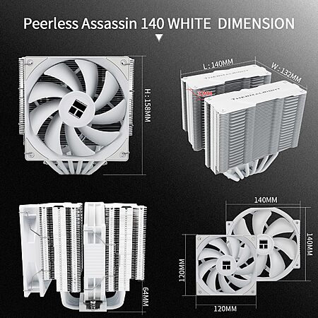 Model: Thermalright Peerless Assassin 140 White CPU Air Cooler, 6 Heat Pipes, Dual PWM Fans and Double Towers,158mm High CPU Cooling with Top Cover,forAM4/AM5,Intel LGA 1851/1700/1150/1151/1200