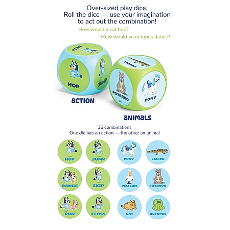 Bluey Wackadoo Workout Dice: Act It Out Dice Game w/ 36 Action Combinations $9.51 + Free Shipping w/ Prime or on $35+