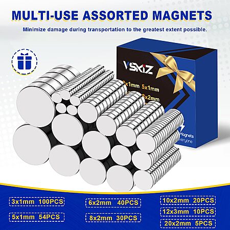 Small Round Magnets Set: 259-pc (7 sizes) or 500-pc (5 sizes)