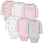 6-Pack Gerber Baby Girls' Long-Sleeve Onesies Bodysuits (Princess/Newborn - 9 Months) for