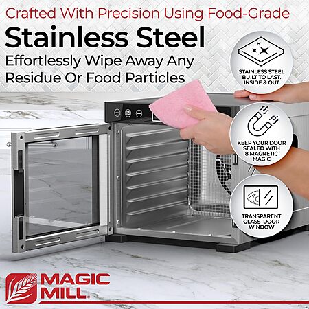 Magic Mill Pro Food Dehydrator Machine | 7 Stainless Steel Trays | Dryer for Jerky, Dog Treats, Herb, Meat, Beef, Fruit | Keep Warm Function, Digital Timer and Temperature Control, ETL Approved