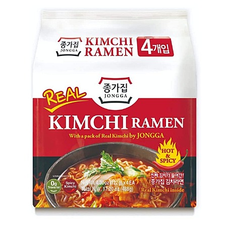 4-Pack 4.3-Oz JONGGA Korean Kimchi Noodle Soup w/ Real Kimchi (Hot and Spicy) on sale for $9.99 - $2 (20%) off when you 'clip' the