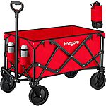 I got the blue one with orange wheel lock tabs & it's legit sturdy & easy to load up water bottles & groceries from sams club, then just roll everything from your car to yo crib over asphalt, gravel, or concrete, but does terrible through mud & sand.