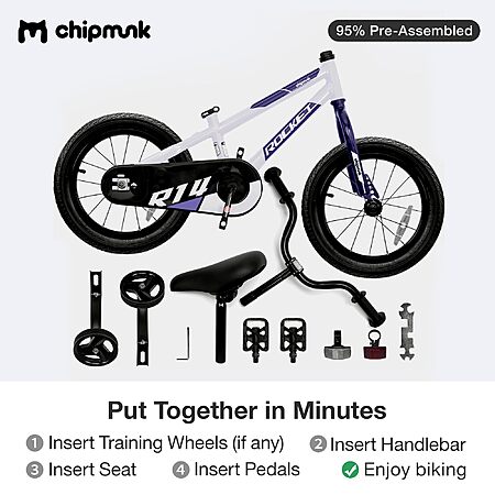 Chipmunk 12" Kids Beginners Bicycle Boys Girls Ages 3-11 Bike (Rocket White) $60.89 + Free Shipping