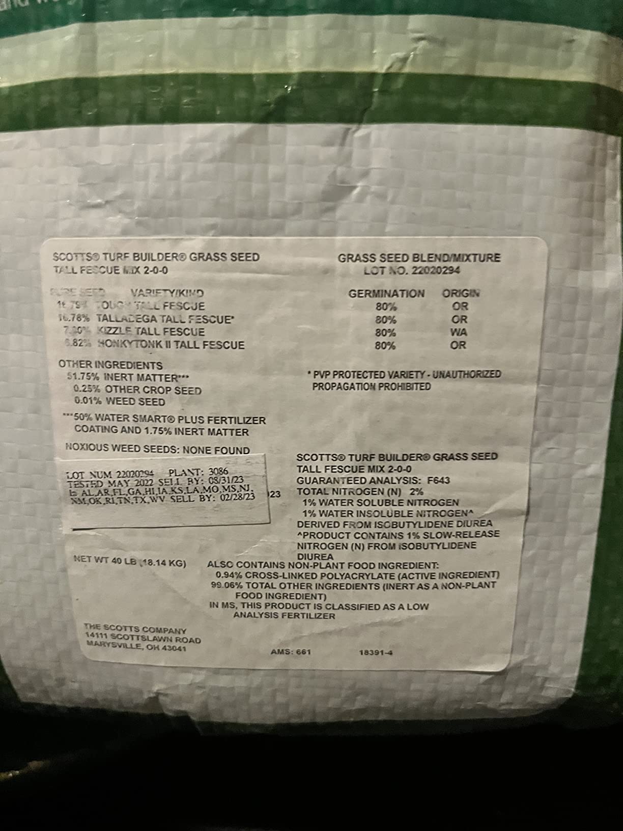 Not a good product that contains 51% inert matter. This is a 50 lb bag with only 25 lbs of seed.