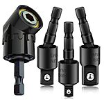 CIGOTU Right Angle Drill Adaptor,4-in-1 Impact Drill Bit Extension,360° Rotatable 1/4 3/8 1/2" Impact Grade Socket Adapter Set,105 Degree Angle Bit holder - Amazon $12.99