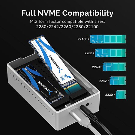 SABRENT Tool Free USB-C Dual M.2 PCIe SSD Docking Station w/ Offline Cloning