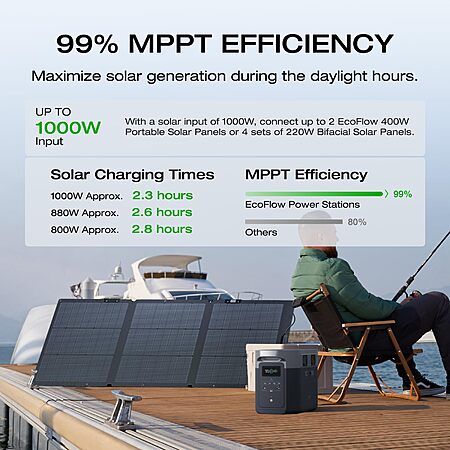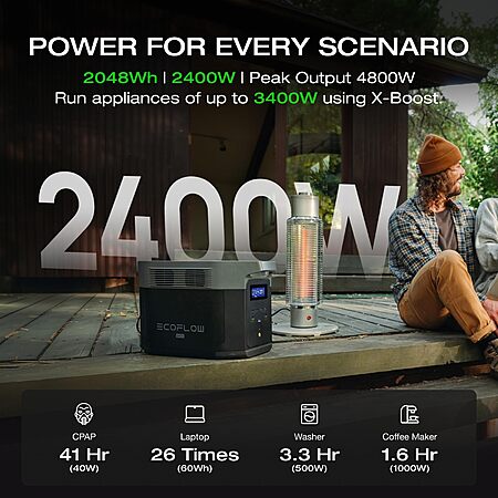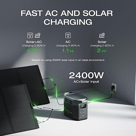 EF ECOFLOW Portable Power Station DELTA 2 Max, 2400W LFP Solar Generator, Full Charge in 1 Hr, 2048Wh Solar Powered Generator for Home Backup(Solar Optional) - Amazon $949