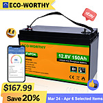 Eco-Worthy-US via eBay has Eco-Worthy 12V 150AH LiFePO4 Lithium Battery BMS 4000+ Cycles For RV Solar Panel w/ Bluetooth Monitoring on sale for $167.99. Shipping is free.