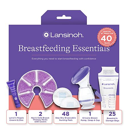 Model: Lansinoh Breastfeeding Essentials Kit for Nursing Moms: Nipple Cream, Nursing Pads, Breast Milk Storage Bags, Hot & Cold Breast Therapy Packs, Silicone Breast Pump, 77 Pieces