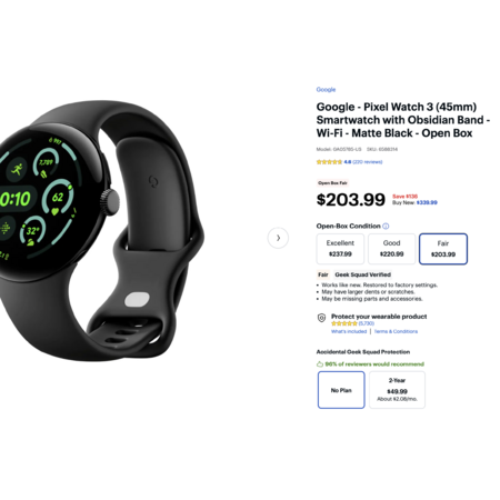 BB| Open Box PIXEL watch 3 45mm WIFI - $203 | YMMV | Shipping and Store pickup