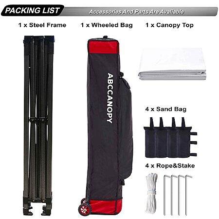 Set up in seconds: Super easy to set up with only 2 people. Roller bag for easy portability and light transportation. Heavy duty wheels glide smooth. Bonus 4 Canopy Sand Bags, 4 Stakes&Ropes for stable and sturdy use.