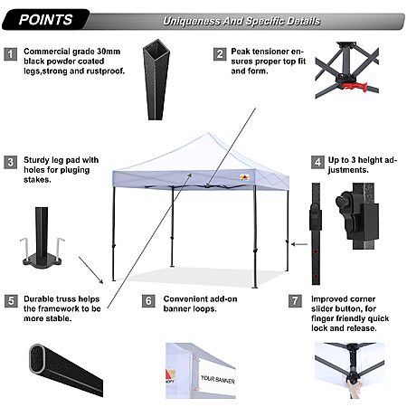 Model: ABCCANOPY Patio Pop Up Canopy Tent 10x10 Commercial-Series (White)